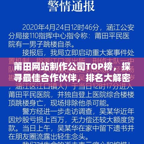 随着互联网技术的飞速发展,网站制作行业逐渐兴起,在莆田这座美丽的城市,众多网站制作公司如雨后春笋般涌现,本文将为您介绍莆田网站制作公司的排名,以便您在寻找合作伙伴时能够更加明确方向。