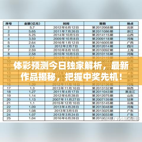 体彩预测今日独家解析,最新作品揭秘,把握中奖先机!