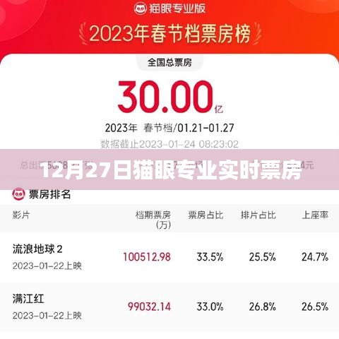 随着电影市场的繁荣,观众们对于电影票房的关注度也越来越高,本文将对12月27日的猫眼专业实时票房进行解读,分析当日电影市场的热点和趋势。