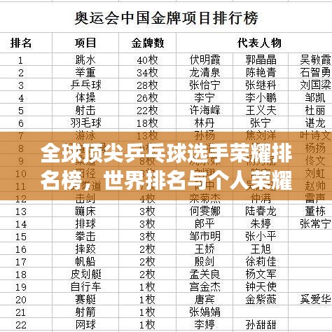 全球顶尖乒乓球选手荣耀排名榜,世界排名与个人荣耀战场全解析