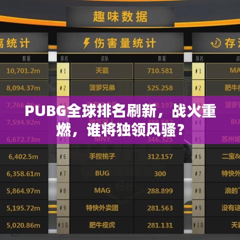 PUBG全球排名刷新,战火重燃,谁将独领风骚?
