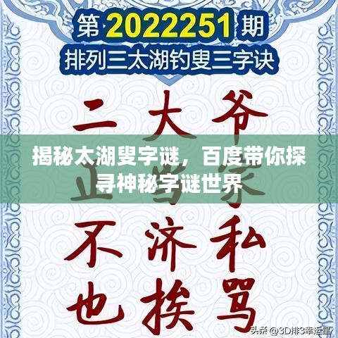 随着互联网的普及和科技的飞速发展,各类信息检索工具成为人们生活中不可或缺的一部分。"百度一下"作为中国最大的搜索引擎,以其强大的搜索功能,帮助用户快速获取所需信息,而今天我们要探讨的,是结合"百度一下"与"3D太湖叟字谜"这一神秘文化现象的话题。