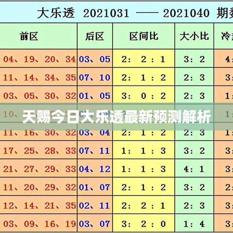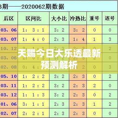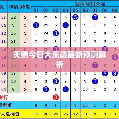 随着人们对彩票的热情日益高涨,各种彩票预测方法也应运而生,我们将聚焦于“天赐今日大乐透预测最新”这一主题,为广大彩民提供一些有用的分析和建议。