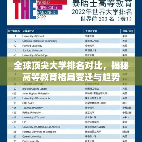 全球顶尖大学排名对比,揭秘高等教育格局变迁与趋势