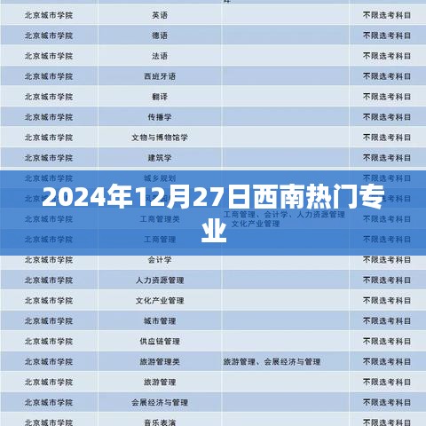 随着科技的飞速发展和产业结构的不断调整,西南地区的教育事业也呈现出蓬勃生机,2024年12月27日,西南地区的热门专业不仅反映了地区经济发展的趋势,也体现了社会对人才培养的新需求,本文将探讨当前西南地区的热门专业及其发展前景。