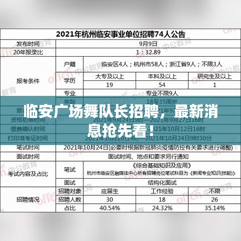 临安广场舞队长招聘,最新消息抢先看!