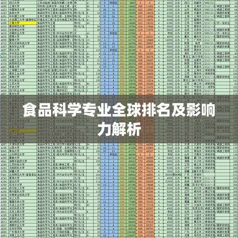 食品科学专业在全球范围内的关注度持续上升,其研究涵盖了食品生产、加工、质量控制、营养健康等多个领域,随着食品产业的飞速发展,各国在食品科学领域的投入不断加大,使得食品科学专业的世界排名成为评估教育质量、研究实力和行业影响力的重要指标,本文将探讨食品科学专业的全球排名及其影响力。