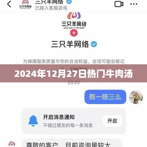 随着季节的变迁,寒冷的冬日已经悄然而至,在这个时节,一碗热气腾腾的牛肉汤无疑是最能温暖人心的美食之一,本文将为您介绍2024年12月27日热门牛肉汤的制作方法、口感特点以及其背后的文化意义。