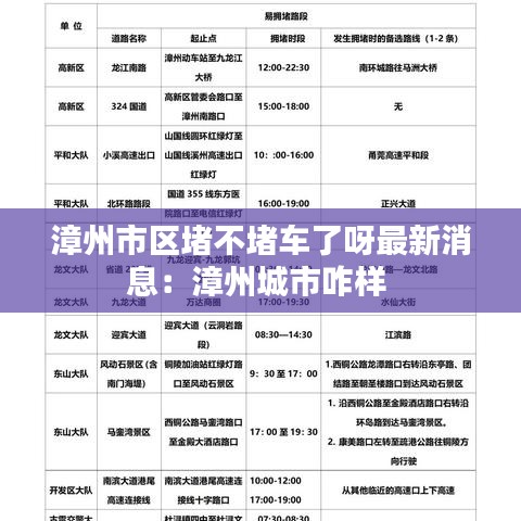 根据最新消息,漳州市区的交通状况已经有所改善。以下是一些具体的数据和情况: