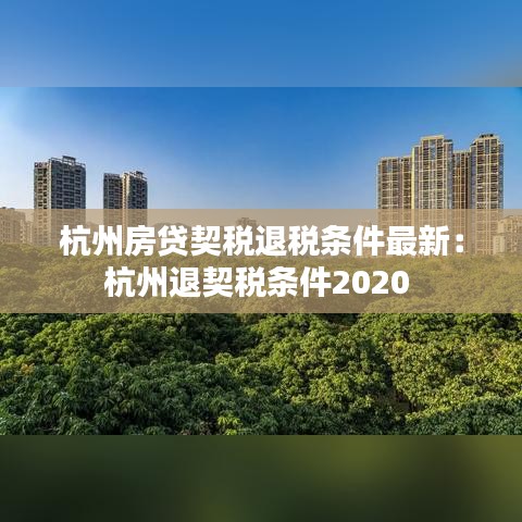 杭州房贷契税退税条件最新:杭州退契税条件2020