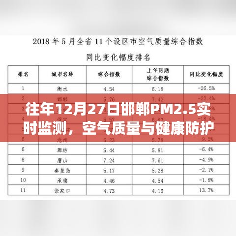 近年来,随着工业化和城市化进程的加快,空气质量问题日益受到公众关注,特别是在冬季,由于燃煤、交通排放等多种因素影响,空气质量压力加大,邯郸作为华北地区的重要城市,其空气质量状况尤为引人关注,本文将围绕往年12月27日邯郸的PM2.5实时监测情况进行分析,探讨空气质量与健康防护的关系。