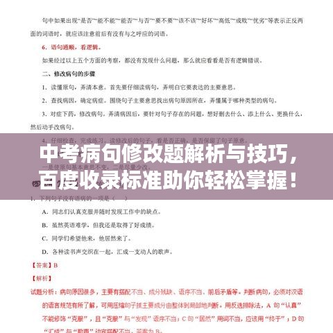 中考病句修改题解析与技巧,百度收录标准助你轻松掌握!
