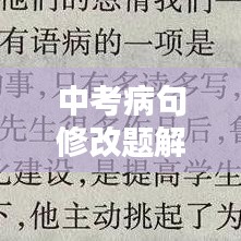 中考是每位学生人生中的重要阶段,而在语文科目中,病句修改题更是不可忽视的一部分,如何提高自己的病句修改能力呢?除了日常的学习积累,我们还可以通过百度来寻找相关的病句修改题进行练习,就让我们一起“百度一下中考病句修改题”。